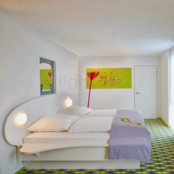 Σχεδιασμός από τον Karim Rashid! Φωτιστικό άνω εξόδου σε θερμοδιαμορφωμένο και εξιλασμένο πλεξιγκλάς με στοιχεία αντανάκλασης αλουμινίου. Xρώματα: διαφανές, πορτοκαλί, βιολετί.